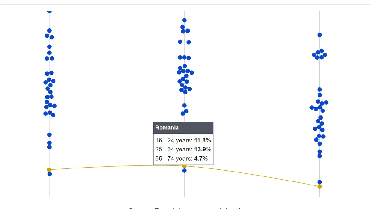 Doar 11,8% dintre tinerii cu vârste între 16 și 24 de ani obțin informații despre activitatea autorităților publice din online. Procentul crește la 13,9% pentru cei între 25 și 64 de ani și se prăbușește la 4,7% când e vorba de persoane peste 65 de ani. În Finlanda, 72,9% dintre cei peste 65 de ani folosesc serviciile e-government.