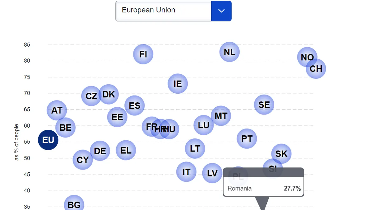 În România, doar 27,7% din populație îndeplinea acest criteriu, penultimul loc aparținând Bulgariei (35,5%), cu Polonia (44,3%) pe locul III din coada clasamentului.