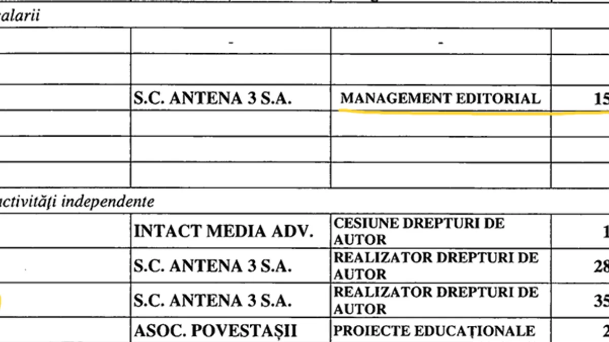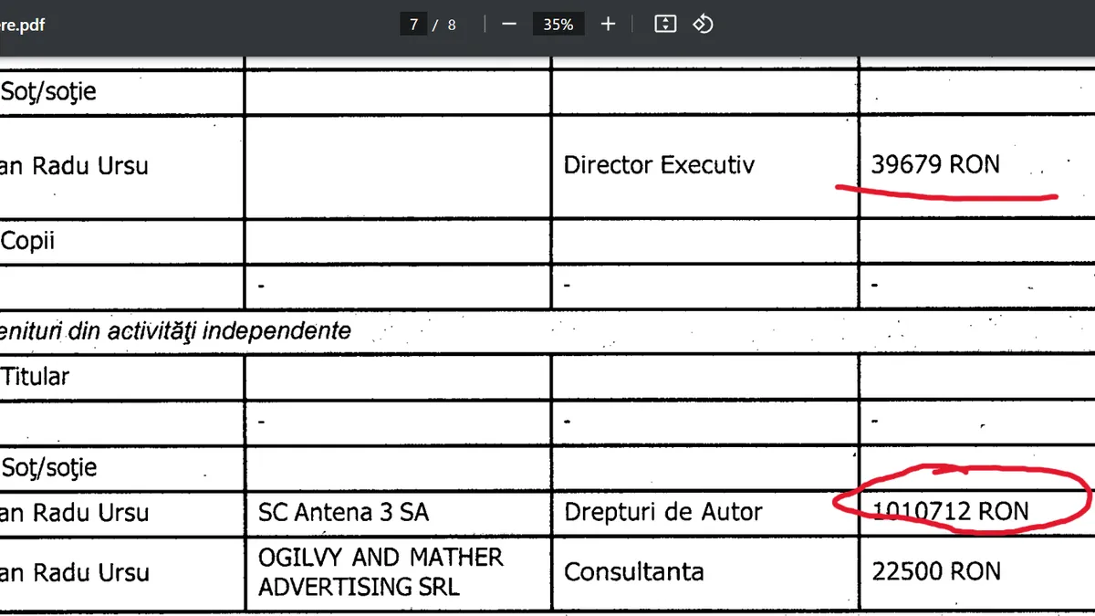În 2023, Adrian Ursu a primit doar 39.679 de lei - salariul de director executiv. Însă Antena 3 i-a acordat 1.010.712 lei pentru „drepturi de autor”.