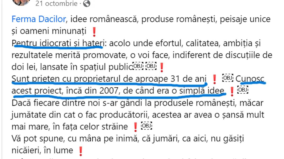 Șeful Autorității Naționale pentru Protecției Consumatorului (ANPC), pesedistul Horia Constantinescu, laude deșănțate pentru Ferma Dacilor: „Sunt prieten cu proprietarul de aproape 31 de ani”, a scris acesta pe Facebook.