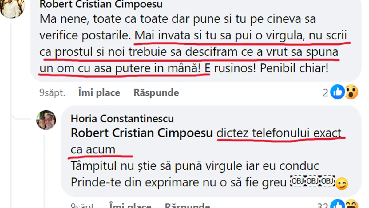 Un comentator i-a reproșat șefului ANPC că nu știe să pună virgule, iar acesta a susținut că dictează postările pe telefon.