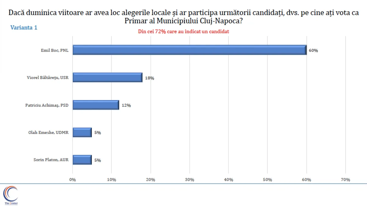 Sondajul arată că, dacă Emil Boc va mai candida la funcția de primar al municipiului Cluj-Napoca, ar câștiga detașat, cu un scor de 60%. Liberalii ar avea și alte variante, dar ele nu apar în sondajul obținut „pe surse” de Media9.ro.