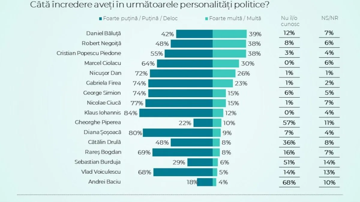 În Cătălin Drulă au încredere 8% din respondeți, dar 36% dintre cei chestionați spun că nu știu cine este.