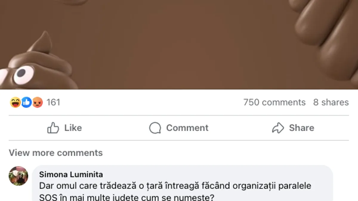 "Dar omul care trădează o țară întreagă făcând organizații paralele SOS în mai multe județe cum se numește?", a întrebat, la comentarii, o femeie.