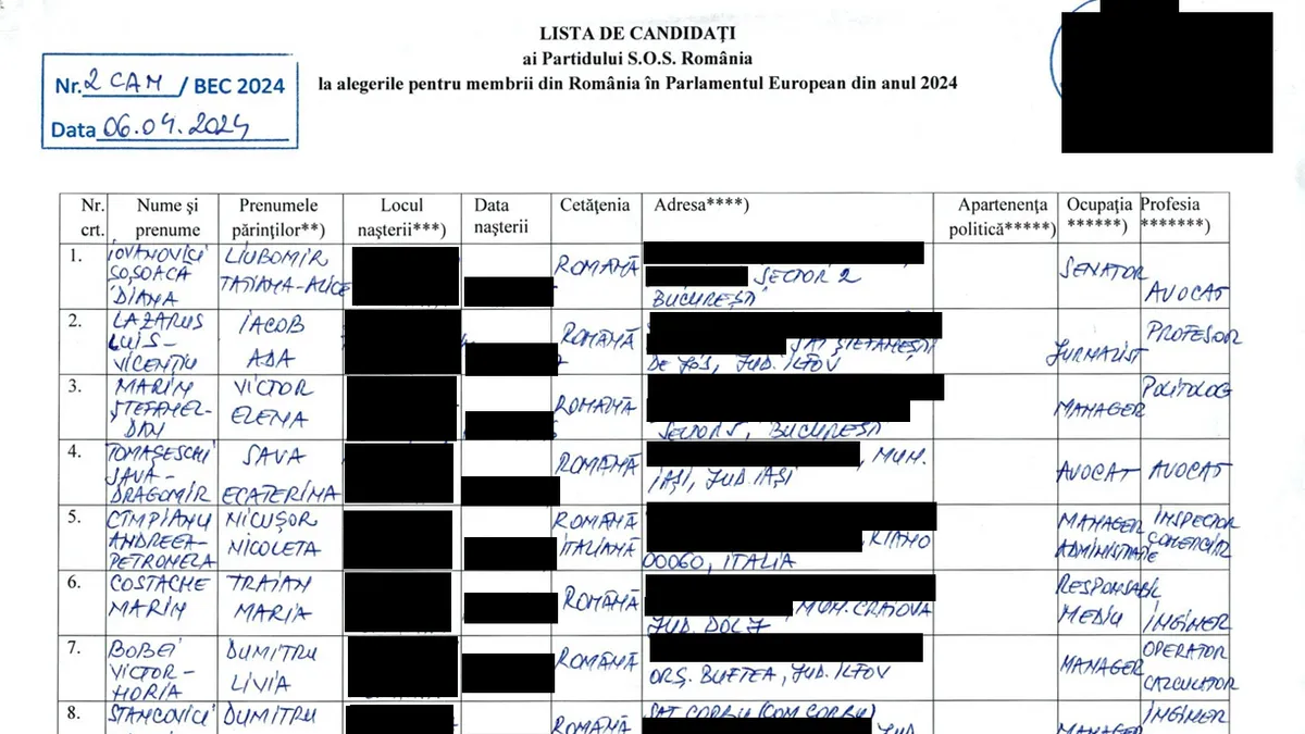 Șoșoacă și Luis Lazarus deschid lista SOS România la europarlamentare. SOS România ar fi al doilea partid care a strâns semnăturile necesare și a depus lista la BEC, după PSD-PNL