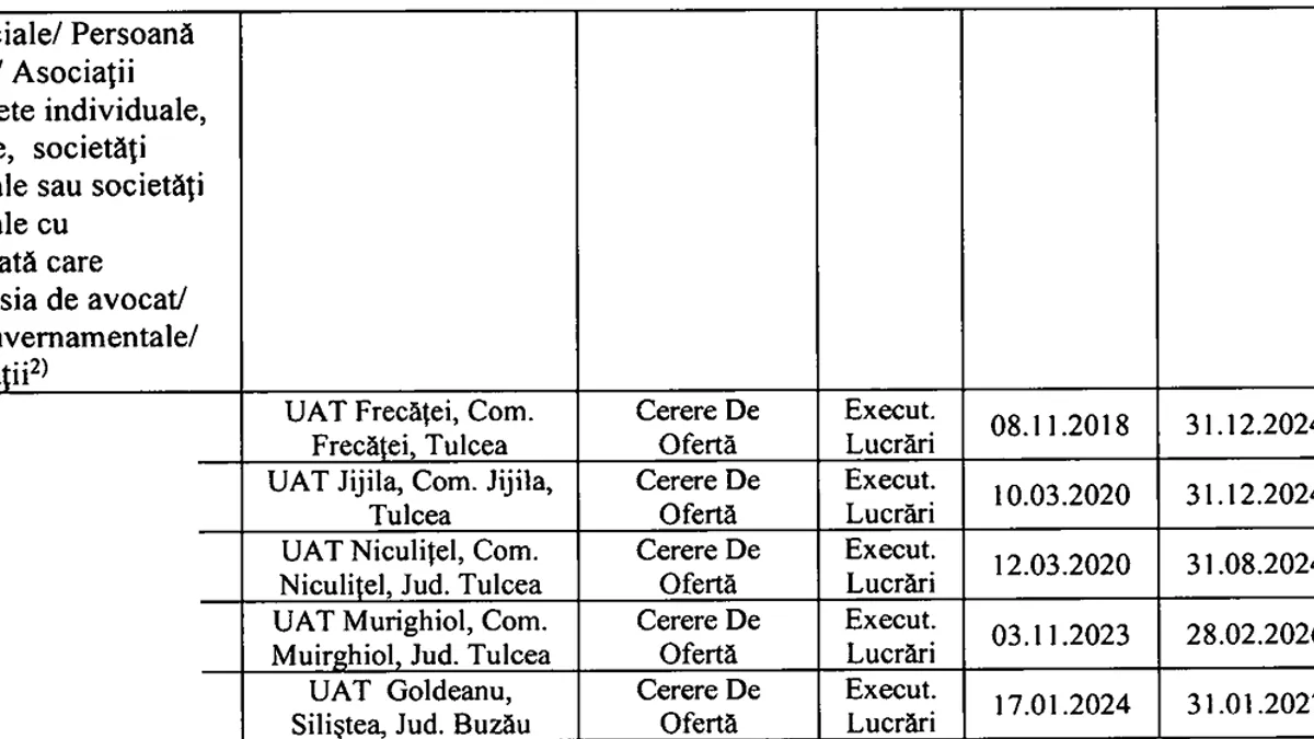Alte trei contracte sunt din 2018 și 2020 cu comune din Tulcea: Frecăței, Jijila și Niculițel.