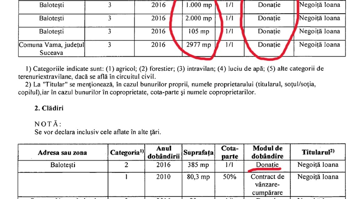 - 4.105 mp teren intravilan în comuna Balotești. O suprafață aproximativ identică apare în declarația de avere din 2012, dar pe numele lui Liviu Negoiță.
